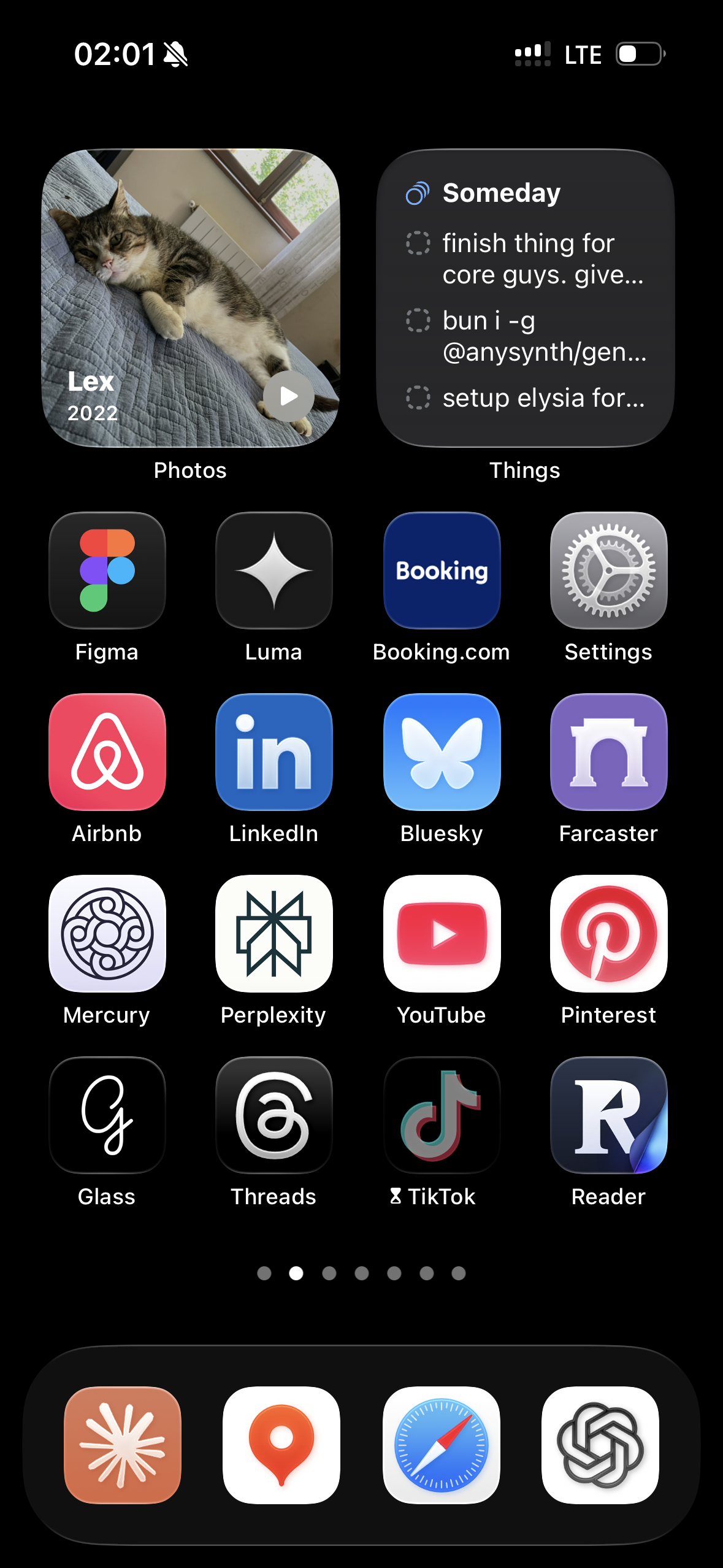 - Flighty widget to see upcoming flights, clicking on widget lets me enter a new flight (if it doesn't get picked up from email automatically)